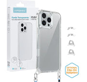 O que a torna realmente única é o seu sistema compatível com cordões e alças (não incluídos), ideal para transportares o telemóvel ao pescoço ou atravessado no corpo. Graças aos adaptadores Clip-On opcionais, podes montar ou desmontar o sistema de suporte sempre que precisares, com total facilidade. 🔗🙌
